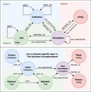 These problems have been discussed extensively, as have non-XML-based modelling alternatives. In recent years, graph technologies have gained momentum within the Digital Humanities community, with editorial projects increasingly adopting graph-based modelling approaches to represent their data. Graph models have been used to connect complex text fragments with annotations, overcoming tree structures (Zeterberg et al. 2025, Liedtke 2020). However, these implementations often remain in the prototype phase or tend to be project-specific rather than generic.